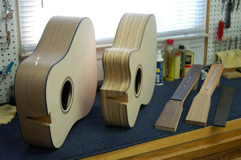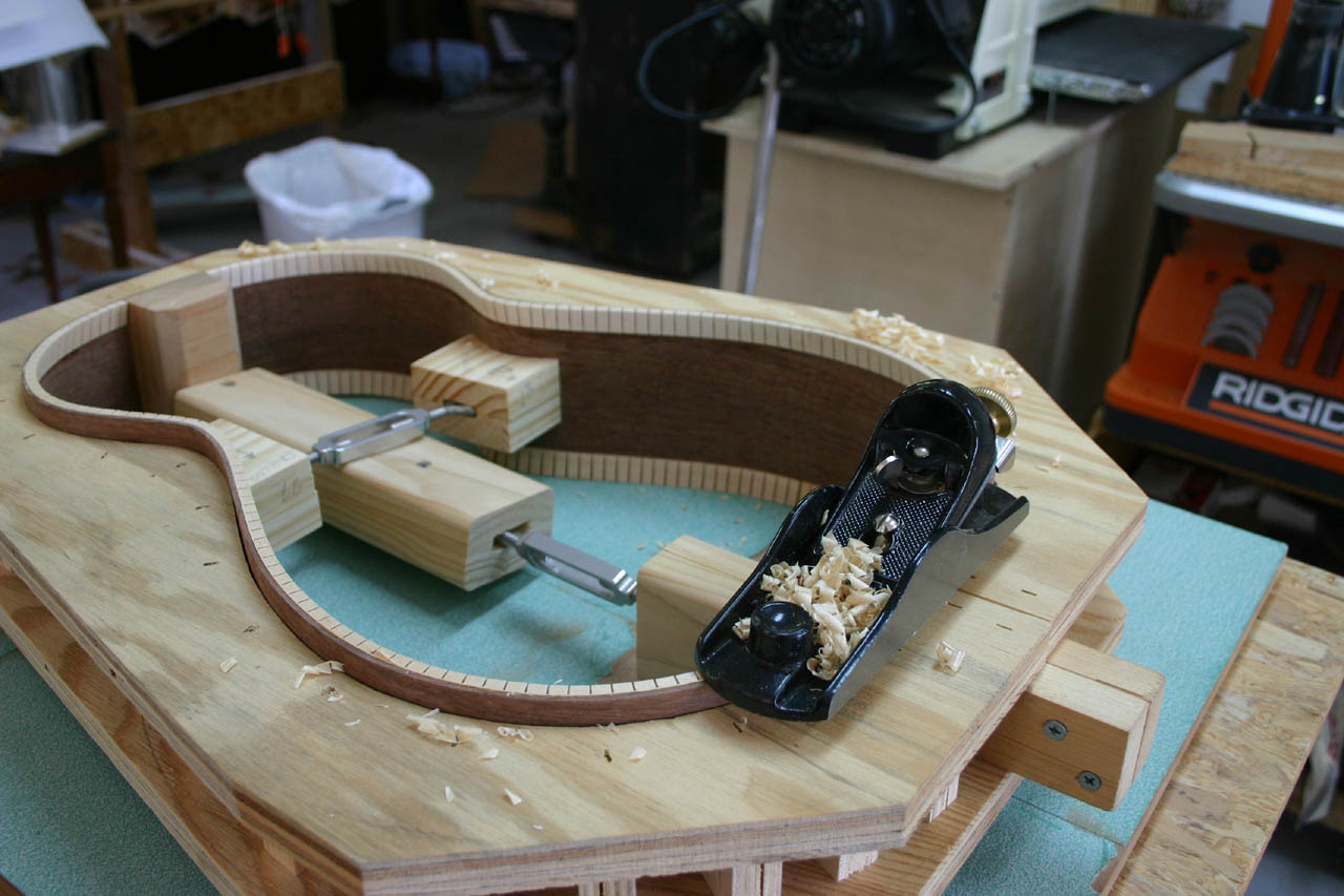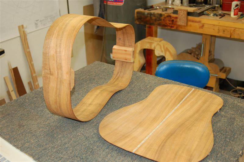 Larry Sakayama is working on two parlor sized guitars - one, a prototype for his wife, Sally, and the other for good friend, Mike Dittrich.