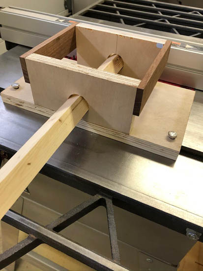 I made the fixture base with a rail to fit in the miter slot on my table saw and added the tee with a locking screw so I could secure it to the saw table.