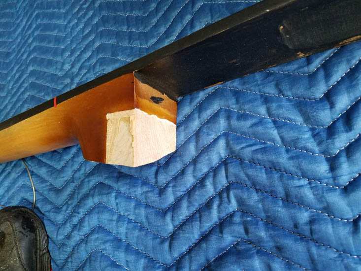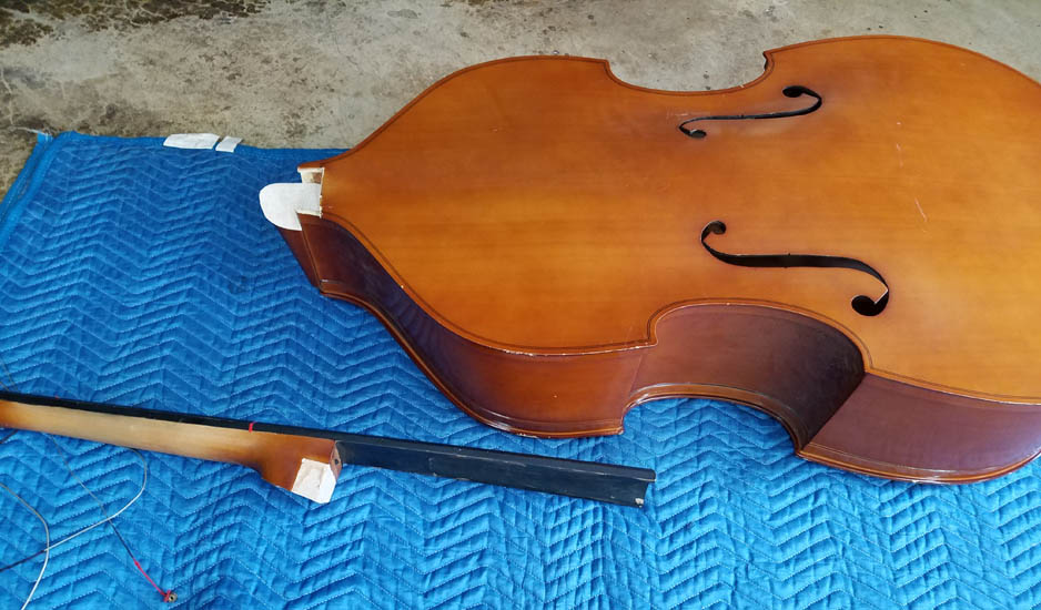 I received a phone call to repair a broken neck on a bass. They said the head stock had broken. Attached are some pictures of what they brought to the shop. Any suggestions? It is a clean break perhaps just some wood glue and clamping?