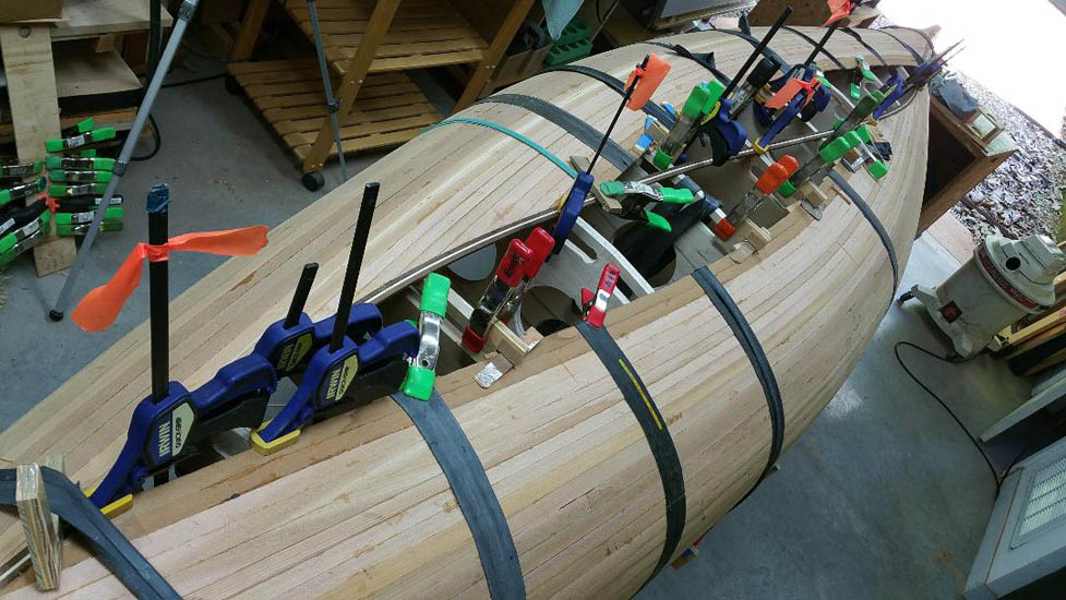 Larry Sakayama - Strip-built canoe in progress
